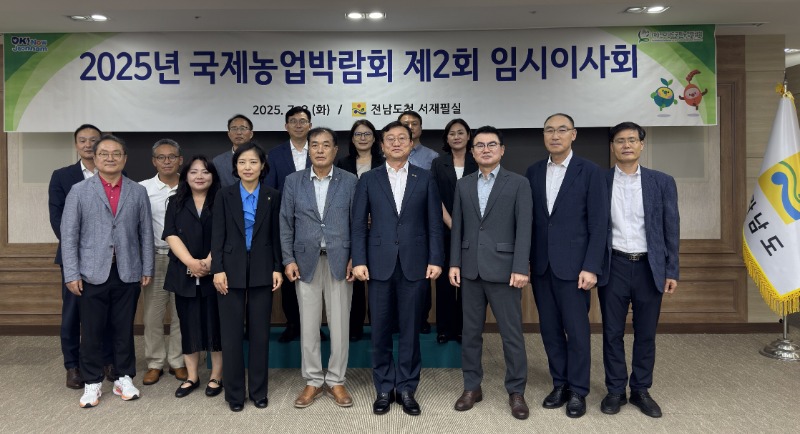 (재)전라남도국제농업박람회는 국제농업박람회 제2회 임시이사회를 지난 8일 전남도청에서 열어 2025국제농업박람회 준비 상황을 공유하고, 추진 방향을 논의하며 박람회 성공 개최에 최선을 다할 것을 다짐했다.
