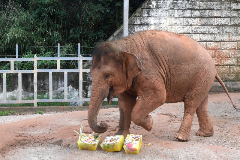 아시아코끼리 ‘봉이’(1998년생)와 ‘우리’(2010년생) 모녀에게는 과일을 얼린 대형 얼음 간식이 제공돼 코끼리들이 얼음을 부수며 먹거나 샤워를 즐기는 장면은 시민들의 이목을 집중시켰다. 특히 봉이는 어린 시절 라오스에서의 코끼리 타기 훈련으로 생긴 사고후유 정신장애(트라우마)로 인해 더 세심한 관리가 필요한 코끼리로, 우치동물원은 많은 양의 영양식과 함께 황토 샤워를 통해 햇빛 차단과 피부 건강까지 챙기고 있다.