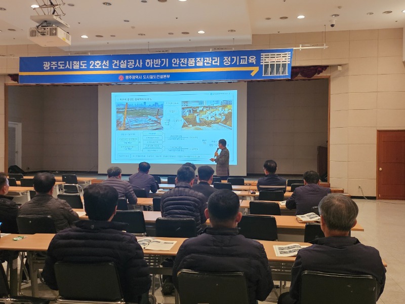 광주광역시 도시철도건설본부는 26~27일 이틀 동안 도시철도 2호선 건설사업 공사 관계자를 대상으로 ‘2025년 하반기 안전·품질관리 정기교육’을 실시했다.