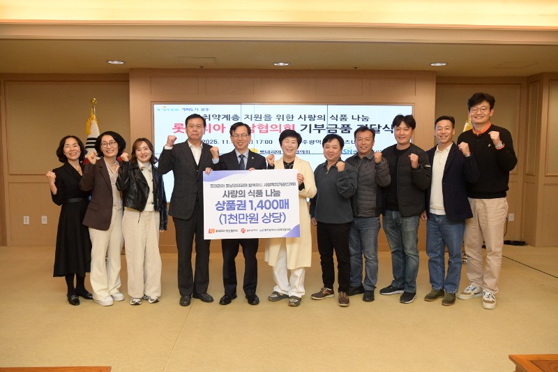 광주광역시(시장 강기정)는 27일 시청 비즈니스실에서 롯데리아 호남협의회, 광주사회복지협의회와 함께 ‘기부물품 전달식’을 가졌다.