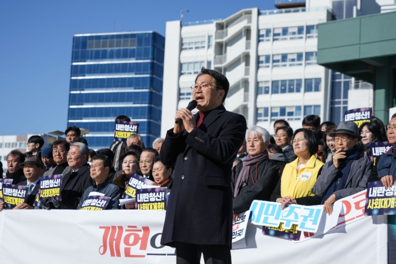 참석자들은 끝으로 기자회견문을 낭독하고, 내란종식과 사회대개혁을 위해 ▲내란세력 발본색원 처벌 ▲지역차별 해소 ▲사회불평등 해소를 위한 기본권 확대 헌법 개정 ▲헌법개정에 실질적 주체인 시민의 참여 보장 등을 요구했다.