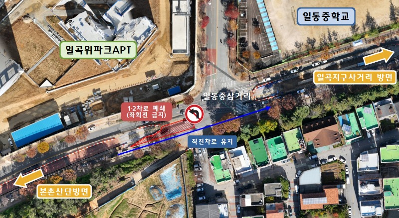 - 좌회전 차량 430m 앞 일곡지구입구 사거리 이용해야