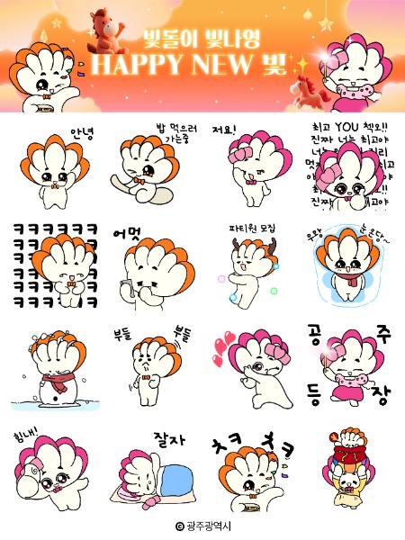 광주광역시(시장 강기정)는 24일 오후 2시부터 시 대표 캐릭터 ‘빛돌이‧빛나영 이모티콘’을 무료로 배포하는 이벤트를 진행한다.