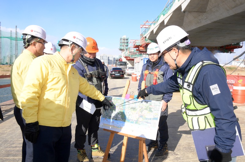 이번 현장 점검에서는 ▲공사 전반의 안전관리체계 구축 및 이행 실태 ▲교량 상부구조 등 고위험 공정에 대한 작업 전 안전관리 이행 여부 ▲현장 여건을 반영한 맞춤형 안전관리 방안 적용 여부 등을 중점적으로 확인했다.