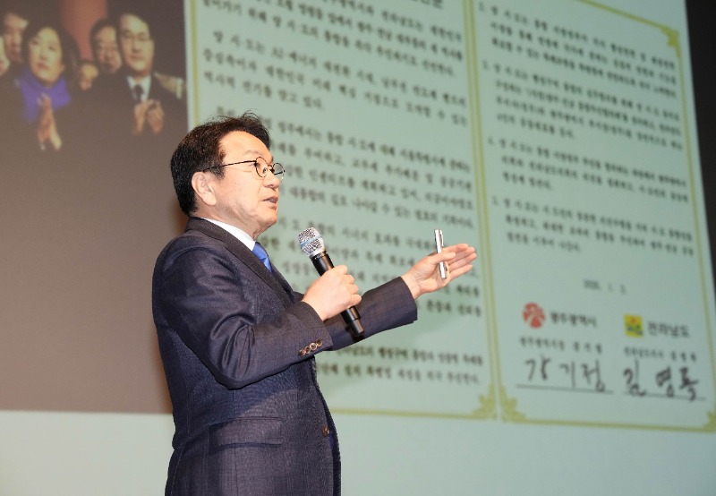 강 시장은 특히 명칭과 청사 문제와 관련해 시민 오해를 바로잡고 지난 27일 시도지사와 국회의원이 합의한 최종 결정을 밝혔다. 통합 특별시 명칭은 ‘전남광주특별시, 약칭 광주특별시’이며, 청사는 현재 3개 청사를 균형 운영한다는 내용이다.