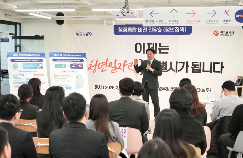 광주광역시(시장 강기정)는 12일 서구 ‘일자리스테이션 상무’에서 청년 일자리 관련 기관·단체 관계자들이 참석한 가운데 ‘광주전남 통합특별법 청년정책 비전 설명회’를 열고, 광주·전남 통합특별법과 연계한 청년정책을 공유하고 현장의 목소리를 청취했다.