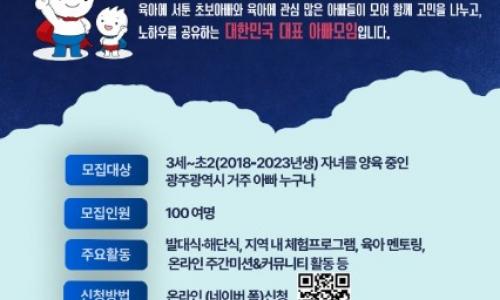 광주광역시와 인구보건복지협회 광주전남지회는 아빠들의 육아 참여를 활성화하고 가족 친화적 양육 문화를 확산하기 위한 ‘2026년 제8기 광주 100인의 아빠단’ 참여자를 23일부터 선착순 모집한다.