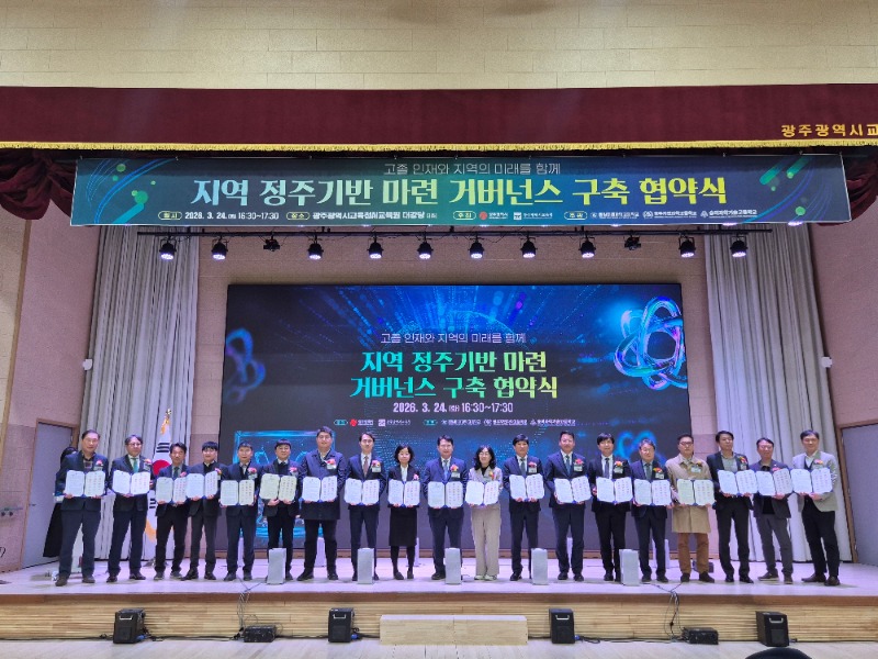 광주광역시와 광주광역시교육청은 24일 시교육청 AI교육원 대강당에서 ‘고졸 인재와 지역의 미래를 함께, 지역 정주기반 마련 거버넌스 구축 협약식’을 개최했다.