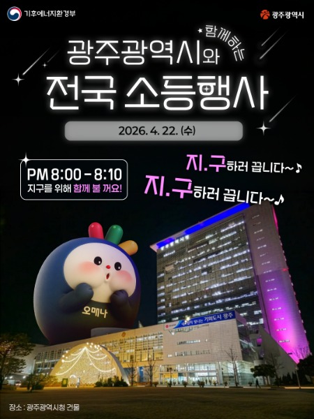 특히 광주시는 ‘지구를 위해 함께 불 꺼요! 지.구하러(지구 구하러) 끕니다’ 메시지를 전달하며, 공공기관뿐만 아니라 일반가정, 아파트, 상가 등에서도 자발적으로 참여할 수 있도록 에너지 절약 실천 분위기를 조성할 계획이다.