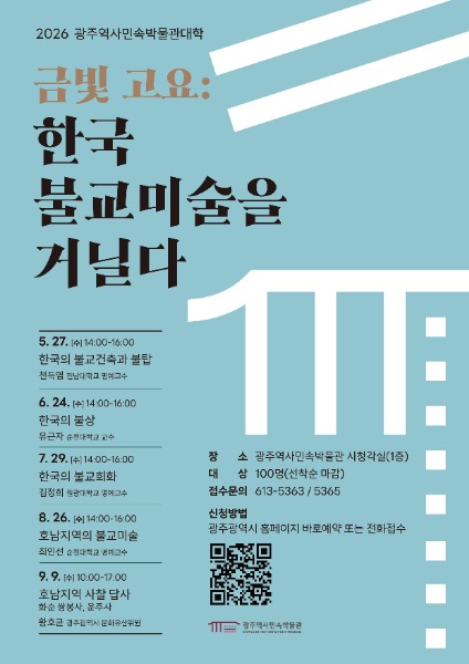 광주역사민속박물관은 오는 5월 27일부터 박물관대학 ‘금빛 고요 : 한국 불교미술을 거닐다’를 운영한다.